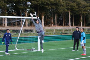 この2日間を通じて、クロストレーニングではボールによってタイミング良く飛び出すこと、ニアサイドとファーサイドでステップを変えて飛ぶことを教わりました。できたことは、コーチに聞いて教えてもらえた内容と改善点を自分で理解をして、次のプレーからすぐに意識して行えたことです。ディストリビューションでは、ファーストタッチの置き所や味方が受けやすいボールを配球することを意識しました。パントキックの質にこだわりを求めて蹴ることができなかったので、継続性の力を身につけて、攻撃の起点となれるように改善していきたいです。