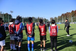 街クラブと中体連所属という日常の練習環境に大きな差があるであろう選手たちが集合し、2日間の活動に取り組みました。その中で大きなテーマは「考える」、トレーニングの仕組みなどを見て、何を求めているのかを考え、プレーで表現すること、そして大いにチャレンジをしてそれが失敗になったとしても、次何をするのかを考え、選手自身で変化をさせていけるようにしようと選手に求めながら取り組みました。指導するコーチ達にも課題に対してすぐ答えを与えるのでなく、選手たちが考えてプレー表現することを求めていこうと共有して進めて行きました。また日常の環境に大きな差がある中でもこのキャンプでは、積極的になんでもチャレンジし、精神的にも強くなり、どんな環境、どんな仲間でも自身のプレーが発揮できるようにしてくことも求めました。1日目のミーティングでは、こちらから発問してもシーンとなっていた雰囲気も、2日目には積極的に声を出す選手が増えてきて、選手自身が変わっていこうとする姿が見られたのはうれしく思いました。2日目の午後のゲームでは、自身のプレーをアピールしようという積極的な姿勢が多く見られ、今回のテーマであるボールを前向きに奪いに行く予測、ポジション取りする選手も増えました、またミーティングで見せた映像のように球際の攻防での戦いがより激しくなるなか、それでもテクニックの発揮をする姿は、選手たちの今後の可能性の高さを感じました。関東地域から多くの年代別日本代表選手を輩出していることを考えると、今回の選手たちにもおおいに可能性があるし、Jリーグアカデミー選手に負けないプレーを今後も臨んでいきたいです。最後に、選手を派遣いただいたチームの皆様、各都県FAからご参加いただいた指導者の皆様、そして当キャンプに関わる関係者の皆様、この場を借りて御礼を申し上げます。ありがとうございました。